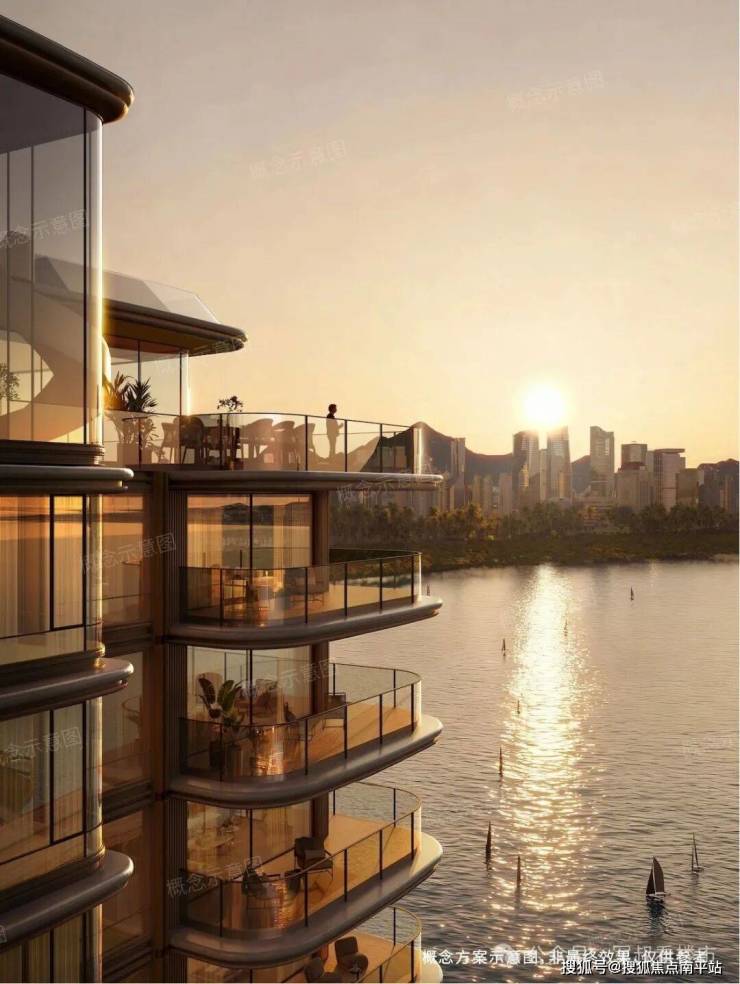 从效果图来看,户户阳台尺度豪奢,看向欢乐港湾海景及前海城市景观,顶复还带泳池,十分豪奢。