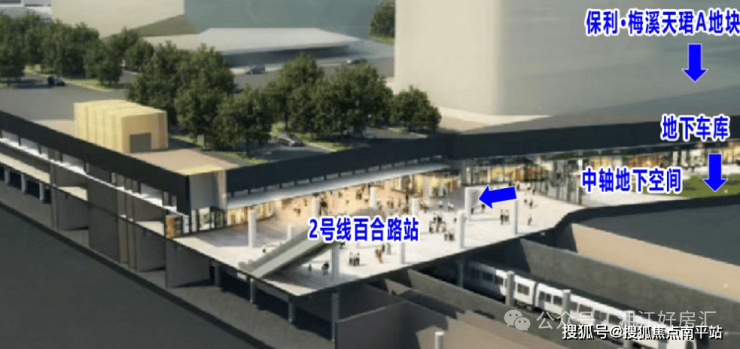 在项目A地块,地下车库还将连通中轴地下空间,步行就能无缝接驳地铁2号线百合路站,成为长沙极少数车库接驳地铁站的高端住宅小区,今后刮风下雨都不怕,真正实现“优雅归家”。