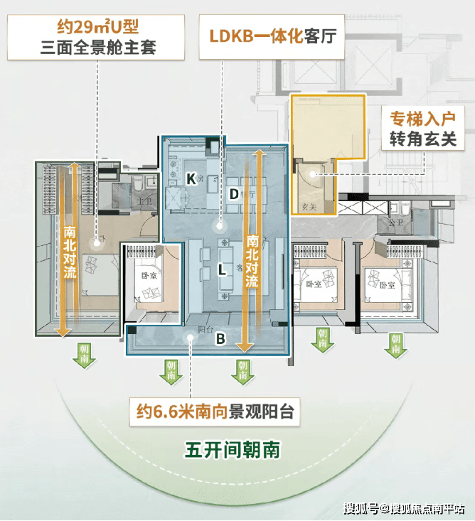 这户型的过人之处,我愿称之为 “通透尺度天花板” ,主要体现在两点:一是 超强对流能力 ,二是 豪宅级空间尺度 。