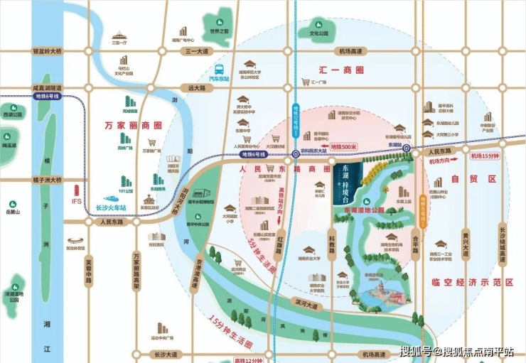 长沙发展的热点板块是滨江新城、洋湖、梅溪湖、东湖板块,本项目位于东湖板块核心。片区是芙蓉区政府“跨河东进”主发展阵地,也是隆平高科技园区核心。