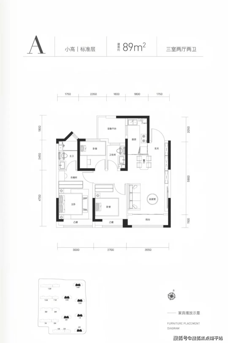 🔥A户型|89㎡三室两厅两卫