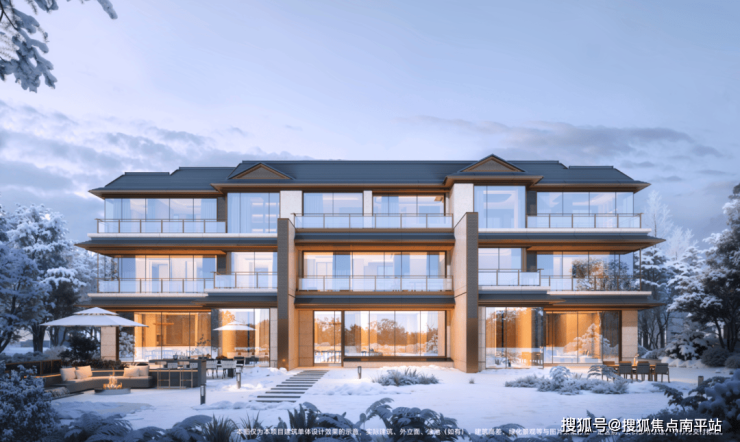 当我们仔细审视绿城·云庐的低密产品时,不难感受到绿城用东方语言抒发的美学追求:3层隐山低密取意"金陵画屏",立面采用大面积落地玻璃与不同石材、铝板、金属搭配,演绎庐系气质;1楼外墙采用贝金米黄石材,2-3楼外墙以米黄色铝板为主、檐口使用香槟色铝板和深棕色金属线条勾勒。