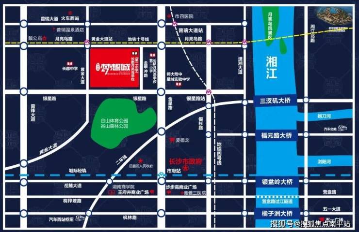 • 项目位于湘江新区核心——月亮岛板块西面,也是滨水新城核心区域。