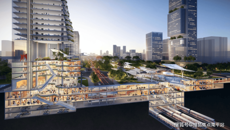 番禺广场融合TOD复合型城市发展模式,打造“地下商业+地上公园”,规划钻石喷泉广场、螺旋艺术展廊、宝石商业广场及翡翠绿阶等公园景观,以自然之链串连形成“大珠小珠落玉盘”美妙意境。