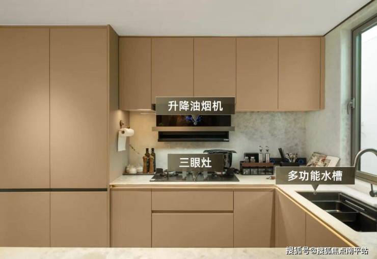 比如,为了匹配番禺美食之都的气质,厨房就配备了三眼灶、升降油烟机、多功能水槽、蒸烤箱等厨电五件套,就算每天煲靓汤,做镬气小炒,烘焙点心,都不怕施展不开手脚。