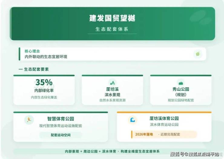 生态:毗邻智慧体育公园(50 米)、厦坊溪公园(20 米),近秀山公园、晋安湖公园,推窗见绿,出门即景,生态宜居属性突出