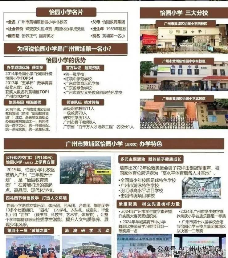 怡园小学是建于1989年老牌名校,于1994年评为广东省首批省一级小学,早于东风东小学、华阳小学,怡园小学是整个黄埔区第一梯队的好学校,考上奥校的人数连续三年排名全区第一。