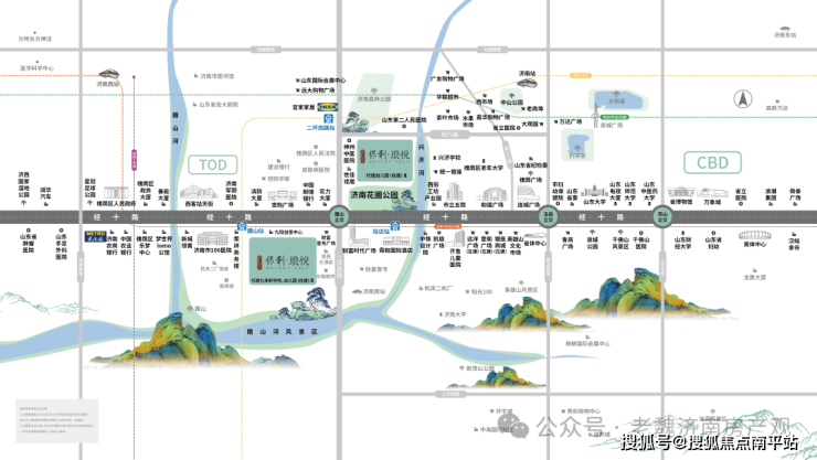 以经十路为主轴线,包括南北两个组团;