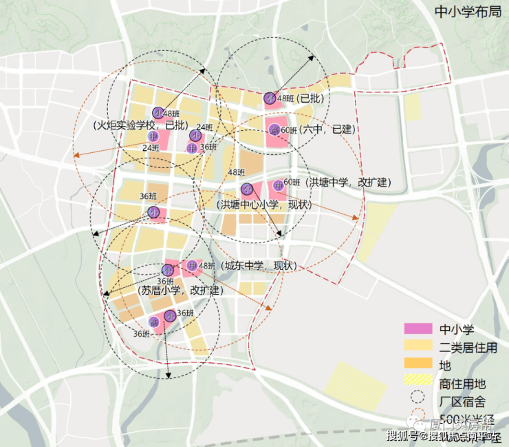 同翔高新城规划建设24所学校,平均半径约800米一所学校,涵盖幼儿园、小学、初中、高中全龄段教育,满足约15万人口的就学需求。
