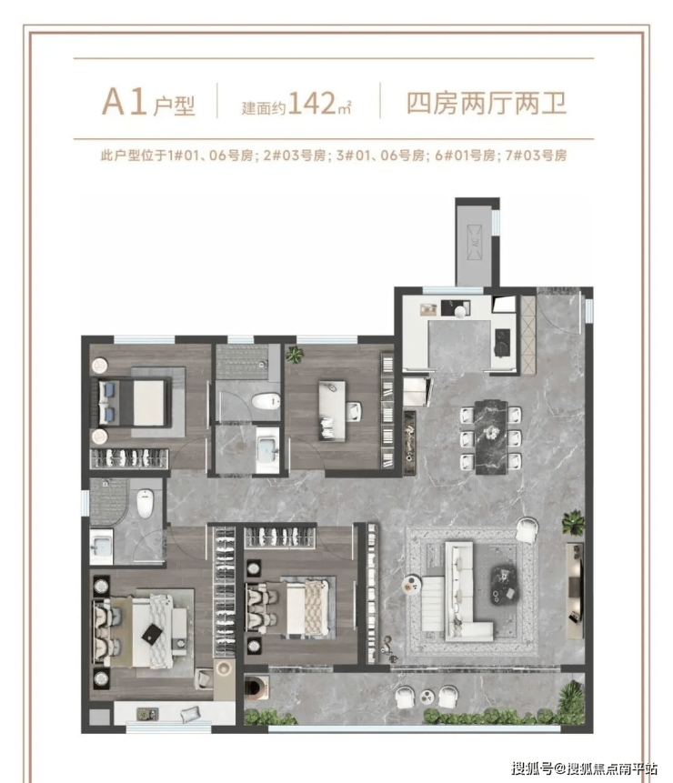 建面约113-142㎡精装奢宅、177㎡环幕大平层