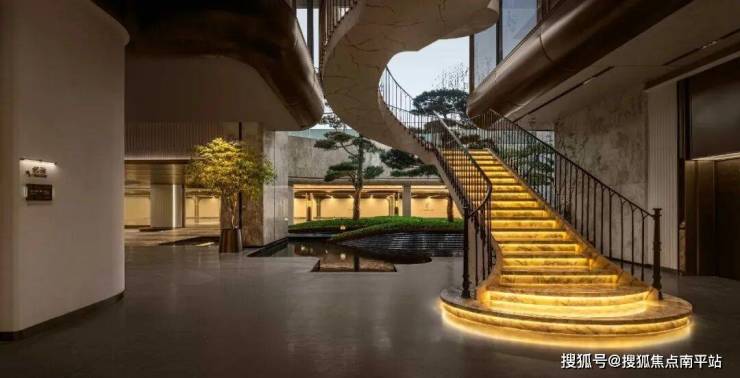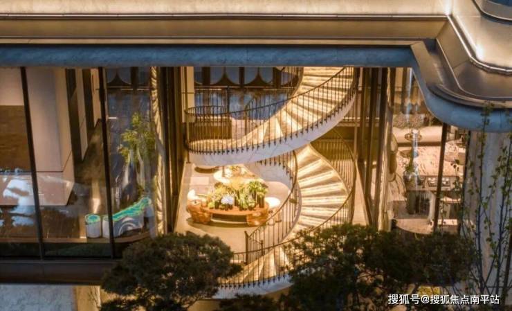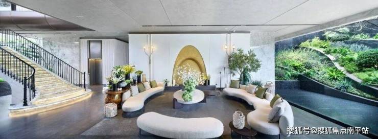 面对弥珍的地块,湖境月华以「伦敦瑰丽酒店」为景观营造母本,借一线水岸资源,通过立体嵌套、内外渗透、功能复合等造园手法,在有限的场地,构筑一幅自然与雅奢交融的立体画卷。