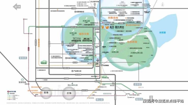 西北侧与科学公园北翼相邻,东南侧是光明欢乐田园,约18.8公里的光明湖碧道串联起中山大学深圳校区、深圳理工大学等节点。