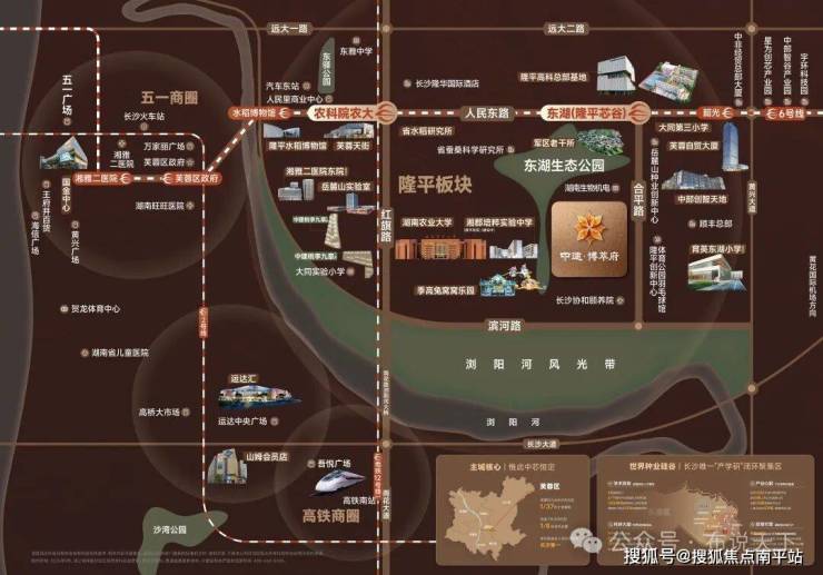 从置身片区生活的微观角度来看,隆平新区是长沙有史以来 唯一既有交通、商业、教育,又有环境和产业,还有高知人才和圈层的片区。