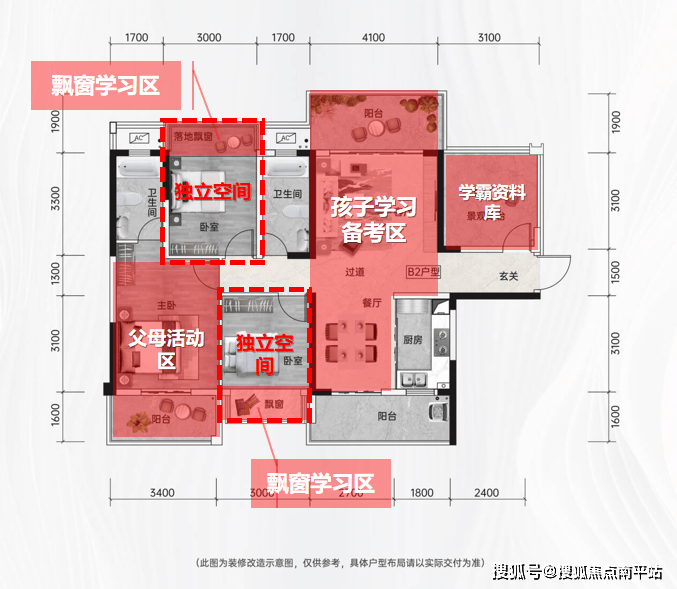四房设计确保每个家庭成员都有自己空间,减少摩擦,为高压下的高中生提供一个稳定、安宁的大后方。