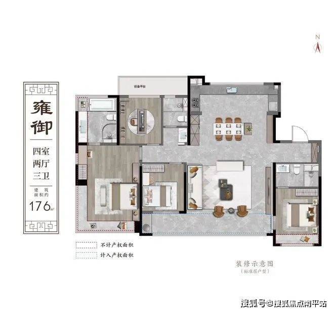 采光与赠送面积:双联阳台+南北落地窗,主卧270°观景飘窗,北向设备平台(约4.7㎡)可改造为生活阳台。
