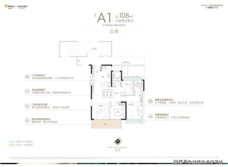 建面约108㎡的三房两厅两卫,总价约700万起,门槛友好,年轻家庭置业中环的不二选择。