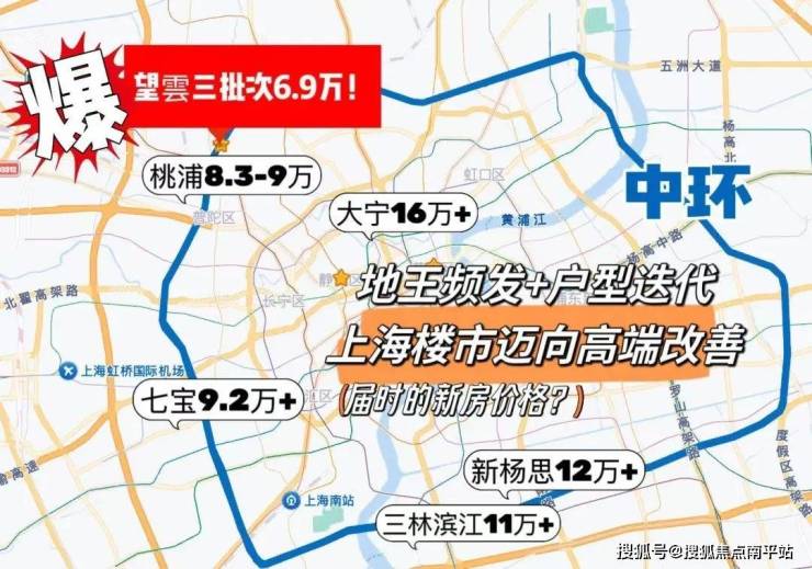 再看当下中环新房的价格,早就不便宜了,桃浦约8.5万/㎡,最近的新房预计9万+/㎡,五角场、长征10万+/㎡,徐汇长桥、三林滨江11万+/㎡....