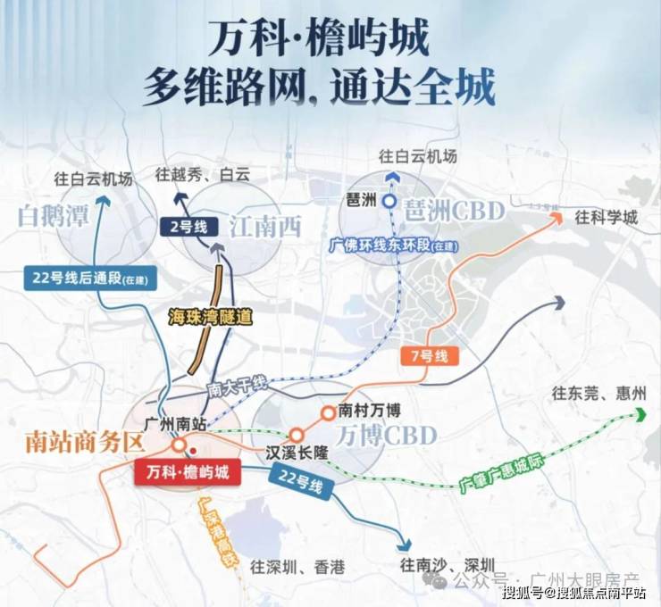 广佛环线能15min琶洲CBD,18min金融城CBD,30min白云机场(4站台:广州南站、石壁、谢村、番禺站)