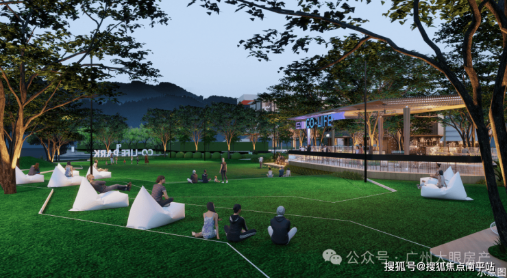 活力阳光草坪:参考日本星野OMO7酒店的设计灵感,打造约1300㎡社交草坪,形成独具特色的坐阶模块,可坐可躺,享受松弛氛围