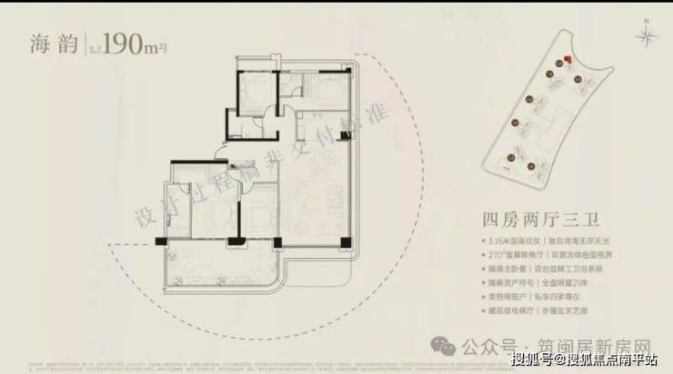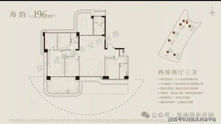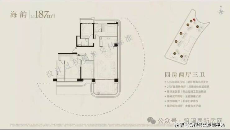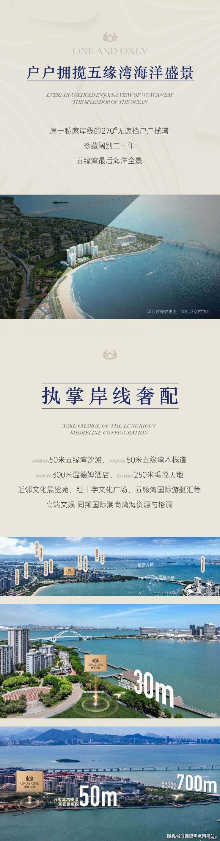 御宸天悦共7栋楼274户,建面约191-436㎡全四代私定大宅,项目头排层高3.3米,后排层高3.15米,全系独立电梯厅,栋栋揽湾,户户观景,厦门唯一零距离接触湾海,距海仅30米、木栈道50米,享五缘湾私家岸线第一视距,南侧约1500米超宽视距,纵距约2000米,自成厦门景观豪宅地标。