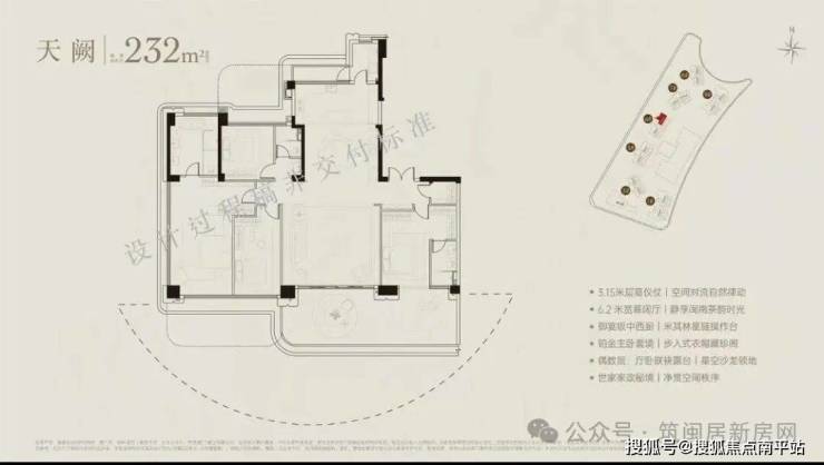 最低总价门槛仅1109万,就能成为尊贵的御宸天悦业主,8号楼188平4房3卫双套卧,3.15米层高,类独梯独户,270°全景视野,双景流体曲面视界!
