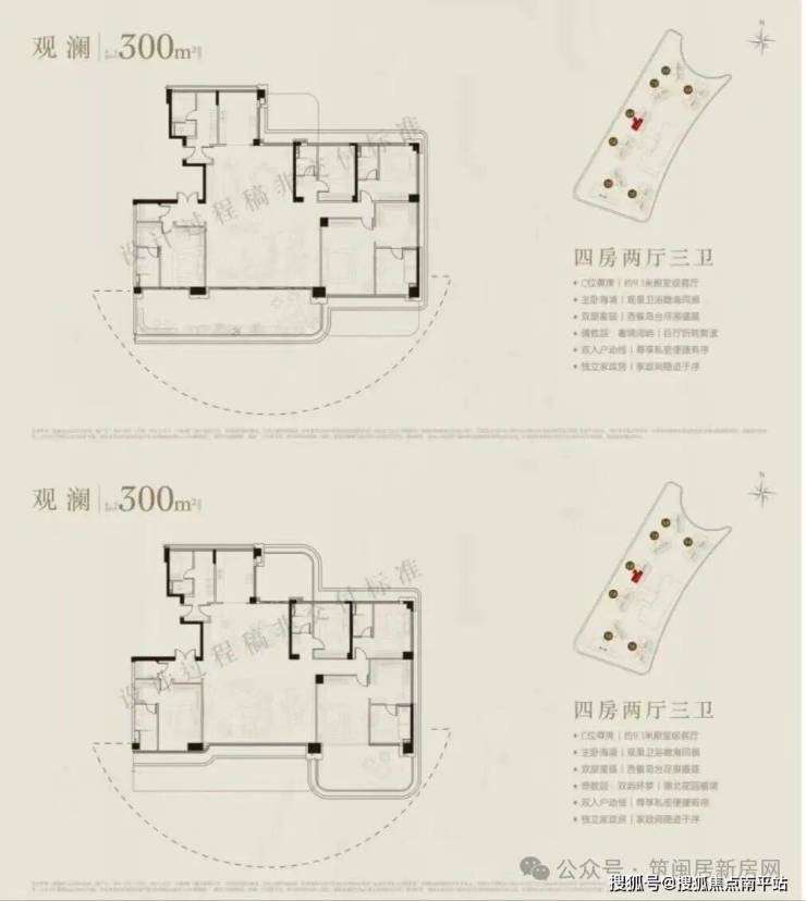 如果说236平以下均为双套卧,无家政保姆间,那么300平及以上户型,已经出现双入户动线,3套卧或更多,另带家政保姆间,且9号楼头排拥有270度海天巨幕瞰景视野,生活再进阶。而楼王户型345平五房,3梯2户(独立保姆梯),层高3.3米,餐客厅豪阔约92平,还双侧270°观景!双入户设计,标配保姆房、阔绰家政间.