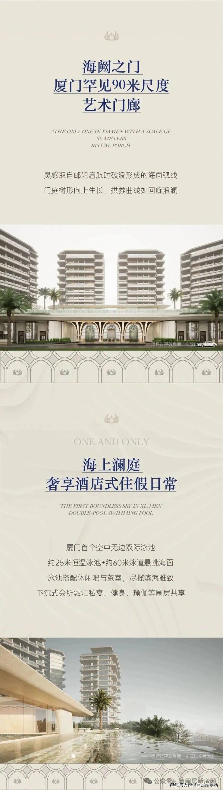 7栋楼三面围合中庭花园,中央庭院直面五缘湾敞开,海上栈道与碧波成为社区景观的自然延伸。建筑如七艘巨轮破浪前行,户户瞰景,栋栋临湾,实现“引海为庭,人在画中”的东方诗意栖居。主推建面约191-436平四代私定大宅,共274户,户户空中花园,综合使用率近100%,最大环幕视野达到270°,其中,约191平仅21套,约436平鼎豪仅16套!厦门唯一零距离接触湾海,距海仅30米、木栈道50米,以湾为庭,独占280米原生岸线,是对岸的3倍。