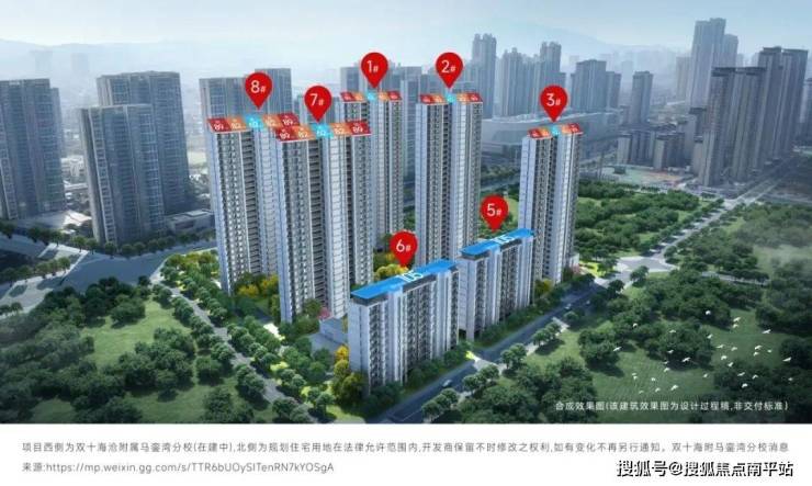 •总户数:758户;规划7栋住宅,含5栋高层(670套)和2栋洋房(88套);高层1#、2#总高31F,3#总高26F,7#、8#总高27F,洋房5#、6#总高11F;高层2梯5户、洋房1梯2户;机动车位808个,车位配比约1:1.07,部分楼栋间距约30米;