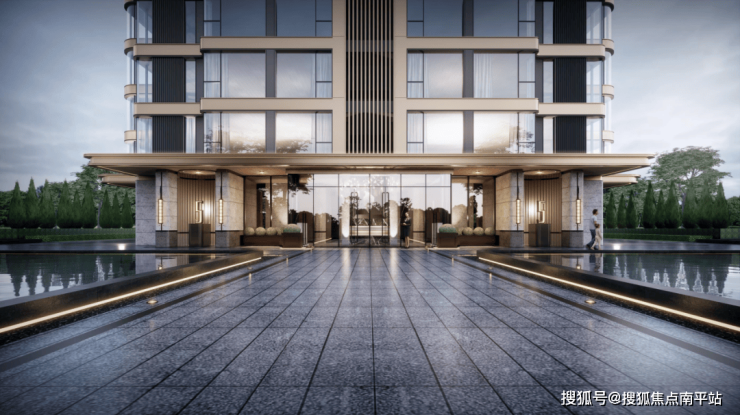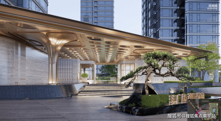 另外,项目社区大门也相当气派, 40米的门楼界面,在金槟色主色调的映衬下与建筑立面相得益彰,再辅以迎宾叠水、迎客松, 豪宅归家气场十足。