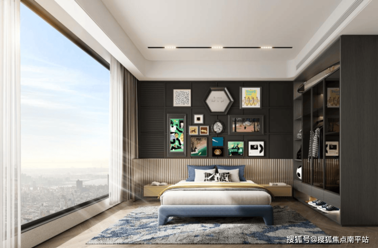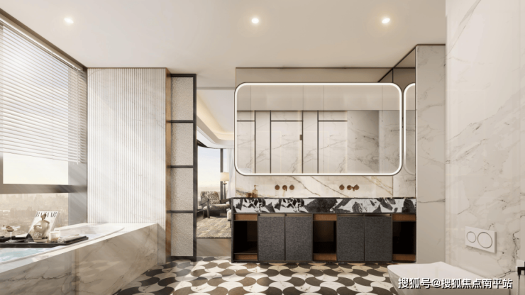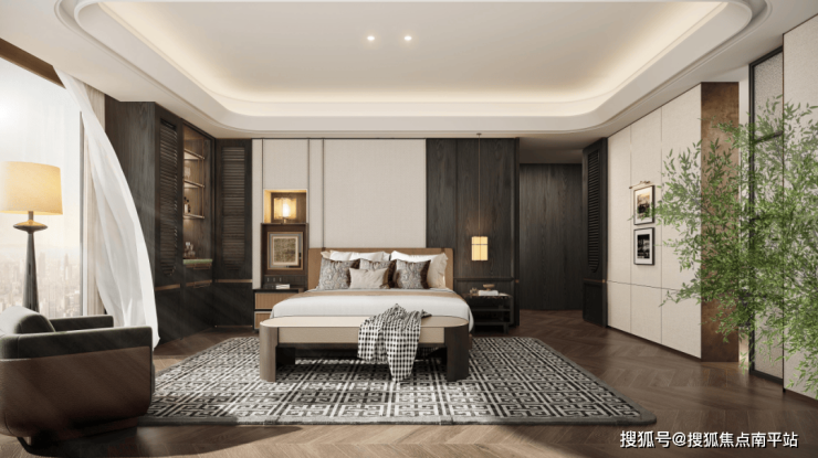 主卧更是有约8.5米开间、约5.9米进深,实力演绎星级行政套房格局,大气双开门、步入式环廊衣帽间、双台盆+大浴缸独立洗浴间等,再加上270°景观面,整个主卧空间更加明亮通透, 感官体验更丰富。