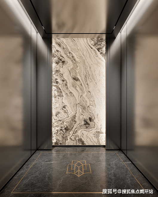 从底部延伸至顶部的铝板电梯厅,以及大面积大理石和大面积金属包装的电梯轿厢,不放过任何一个归家动线上的奢华体验。