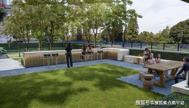 外部超万方入户公园以绿荫步道、休闲卡座、景观小品构筑天然生态屏障,实现"家安在公园里"的生活愿景。