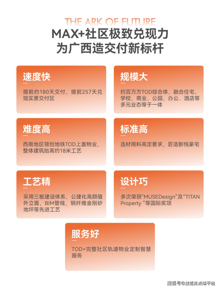 从2023年10月奠基开工,到如今实景1:1还原呈现,未来方舟用约 26个月 的时间,为广西再造一个教科书级的交付新标杆。在市场竞争日益激烈的今天, 未来方舟以超出期待的实景兑现,重新定义广西的交付标准。