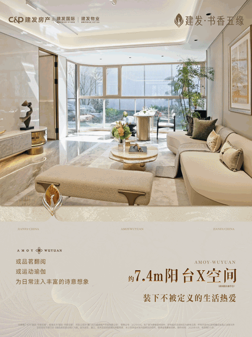 向海而生的地理优势,让建发・书香五缘成为难得的瞰海臻品。推窗即览湾、海、园多重盛景,蔚蓝海面与绿意园林相映成趣,重构了窗外的价值维度。约 7.4 米的阳台 X 空间,更是赋予生活无限可能 —— 清晨在这里品茗翻书,午后伴着海风练习瑜伽,傍晚欣赏落日熔金的海景,每一刻都充满诗意。