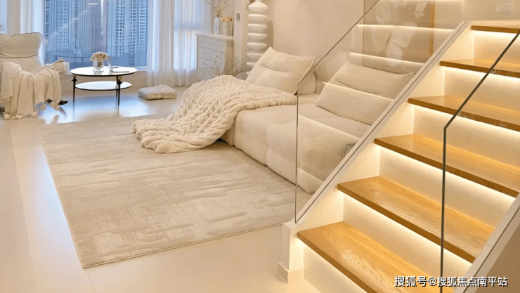 光影的温柔仪式: 踏板下嵌入的隐形灯带,是深夜里无声的守护。起夜时,无需刺眼的主灯,一束暖光顺着台阶铺展,如月光倾泻,照亮脚下的安全,更点亮心中的温暖。这是属于家的独一无二的仪式感。
