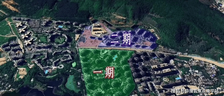二期临近海螺岭山脚,所以在结合原地势特点后,二期的园区内部采用了东低西高的两段退台式设计。二期内部有24栋总高15~19层的高层住宅楼,1栋三层高商业综合体所组成。