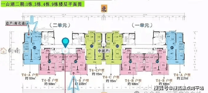 高层住宅楼的平层内依据规划建设的不同被分别设计为两梯三户和两梯四户,以平层内设计为两梯四户的住宅楼为例,属于平层内边户的房型,属于南北通透的纯板式格局,属于平层内中间户的房型,因为其北侧衔接连廊。所以在降低了室内部分房间私密性的同时,整体提升了该套中间户的室内通风和采光性能。 三亚一山湖售楼处电话400-159-8559转接5555【营销中心】✅✅