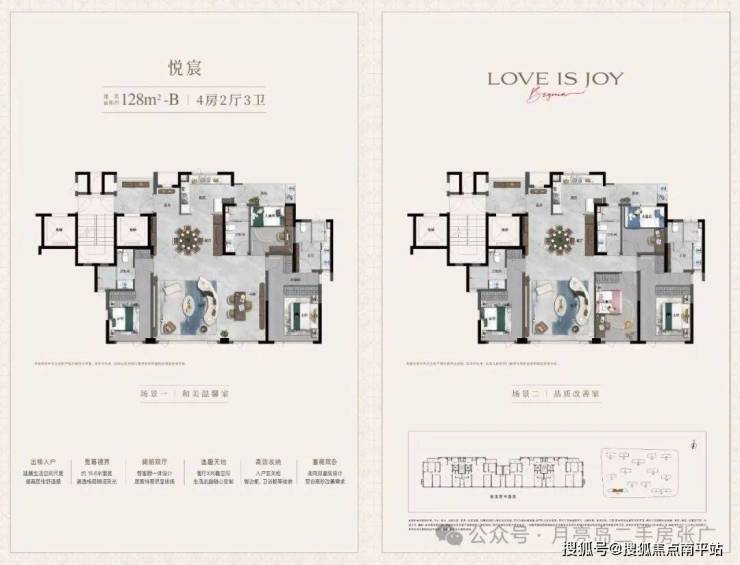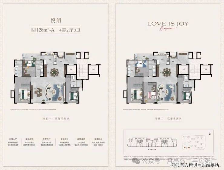 基于对当代菁英家庭改善向往,悦海棠定向研发悦己户型体系,建面约128-172㎡轻奢美学华宅,以X+1可变空间、家庭平权、超容量收纳等创新设计,由外而内,全维擢升精奢质感。