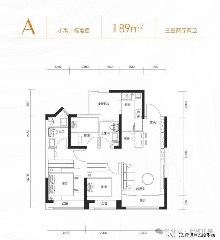 👉小高89平米,三室两厅两卫