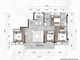 而我们也可清晰看到, 在方厅这种设计形态下,减少了空间之间的阻碍,将客厅、餐厅、中西厨、卧室空间构筑为更加便捷的洄游动线,减少空间死角与浪费的同时,阻隔更少,空间更舒适也更开放, 赋予家庭成员之间更多交流与互动。