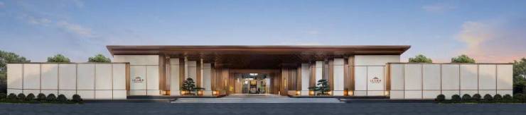 立于文靖路,加上两侧的沉香米黄大理石景墙,中建东山樾府 东西跨度约90米、高约 8米的主大门 ,气势恢宏。