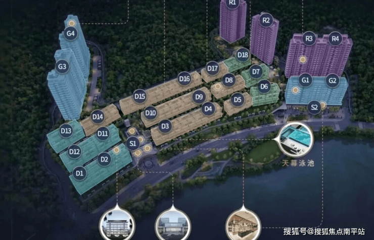 总楼栋:4栋9-17层小高层,18栋4-6层二三叠院