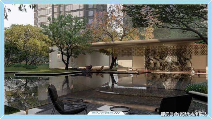 500㎡无界水庭:水景与湘江形成"双江呼应"的视觉奇观,既是风景也是社交场。