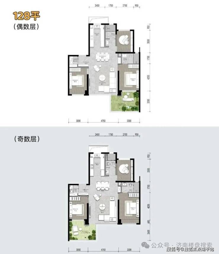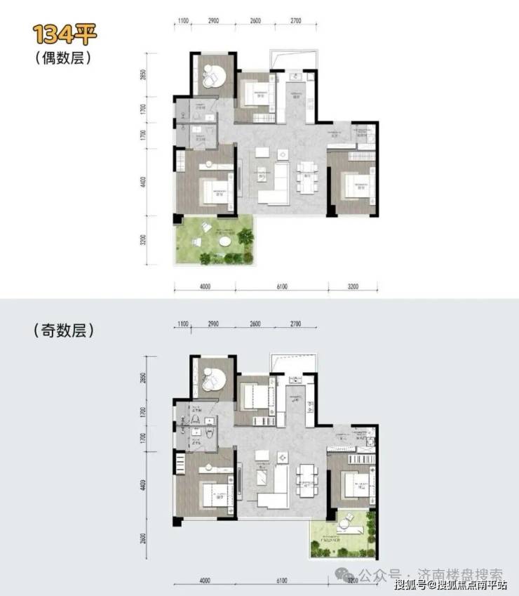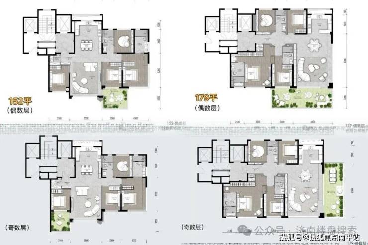 除了高得房率之外,每家每户都带错层露台,179㎡户型设置侧向、南向露台,其他户型为南向露台,并且,项目没有过分追求大尺寸,将面积控制在一定范围内,比较合理。