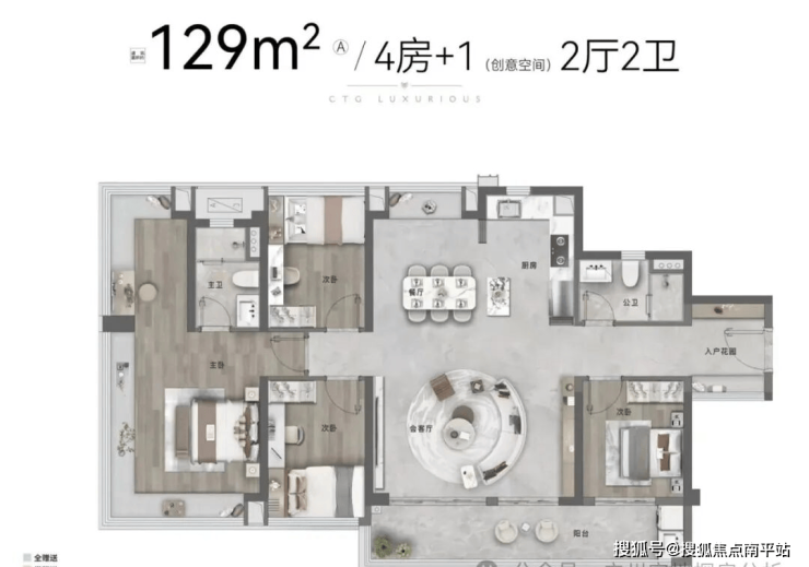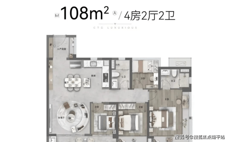 108方四房两厅两卫,四开间朝南,全屋高配置交付,6米多大阳台。