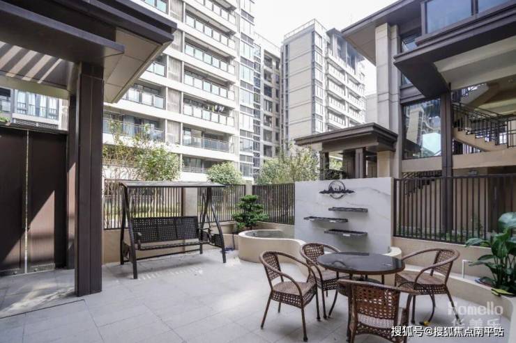 全景推拉门,庭院绿植与室内无缝衔接,庭院铺大理石地板,搭配水景墙与错落绿植,午后一杯咖啡、一本好书,惬意值爆表!