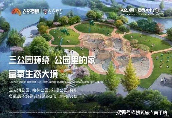 11大主题公园:体育公园、湿地公园、溪水公园、智慧公园、健康公园、中央公园、站前公园、艺术公园等环绕为翰林府带上“翡翠项链”