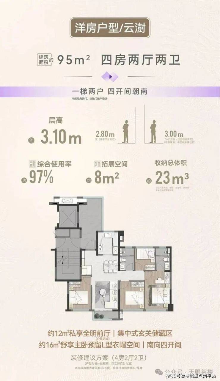 ④厦门首款95平洋房4房,类独梯设计,带约12平入户明厅,综合使用率高达约97%,同样总价岛内二手难觅15年以内楼龄二手。