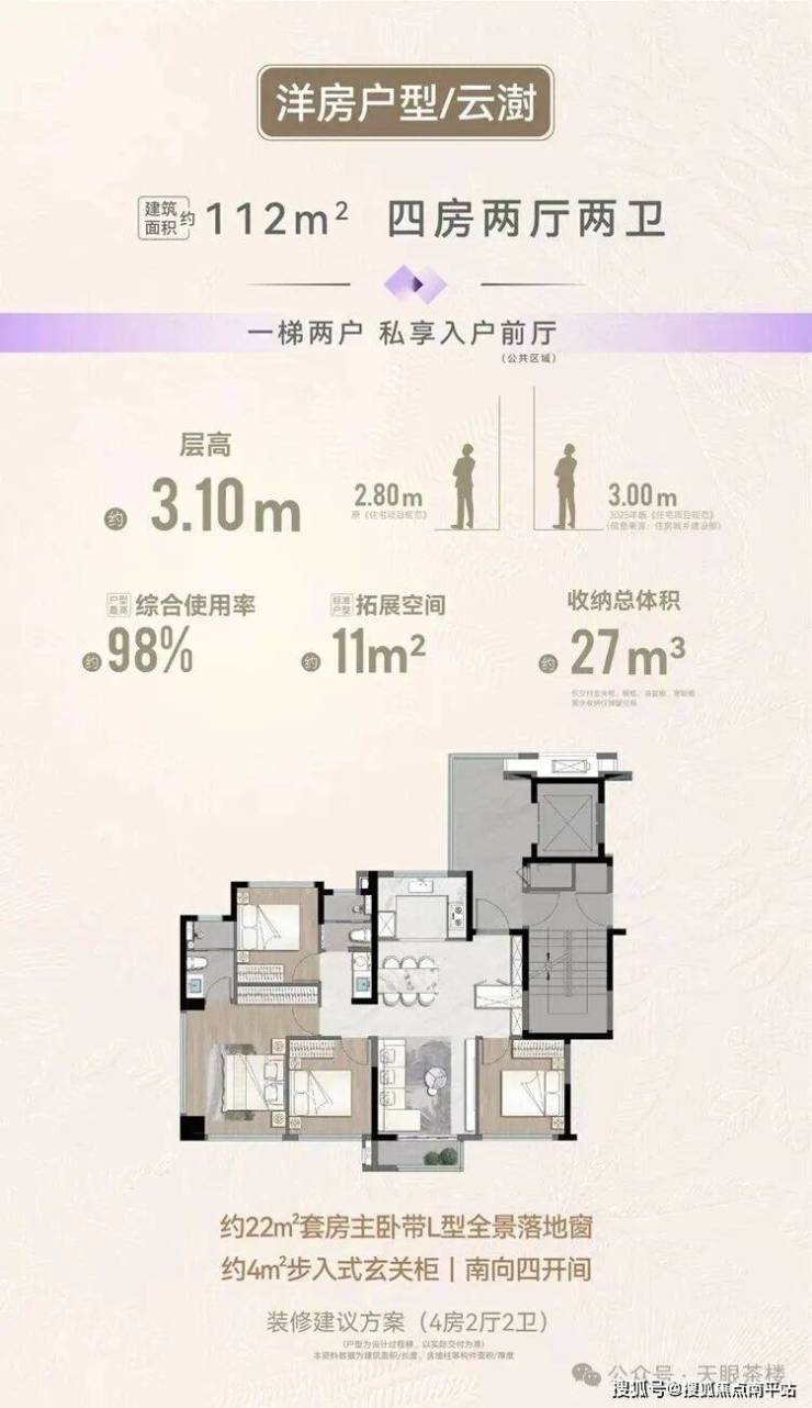 ⑤思明东首个约112平洋房4房,带约13平入户明厅,约98%综合使用率,岛内无敌手。