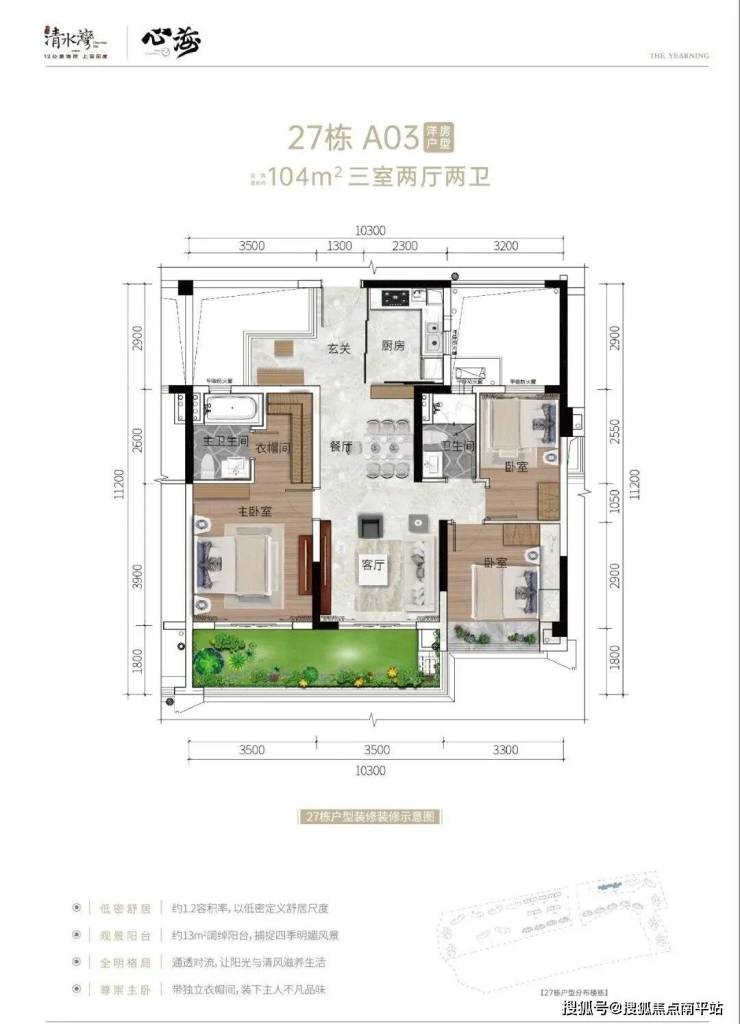 15、16号楼103㎡户型,三房两厅两卫27#02、03号位104㎡户型,三房两厅两卫